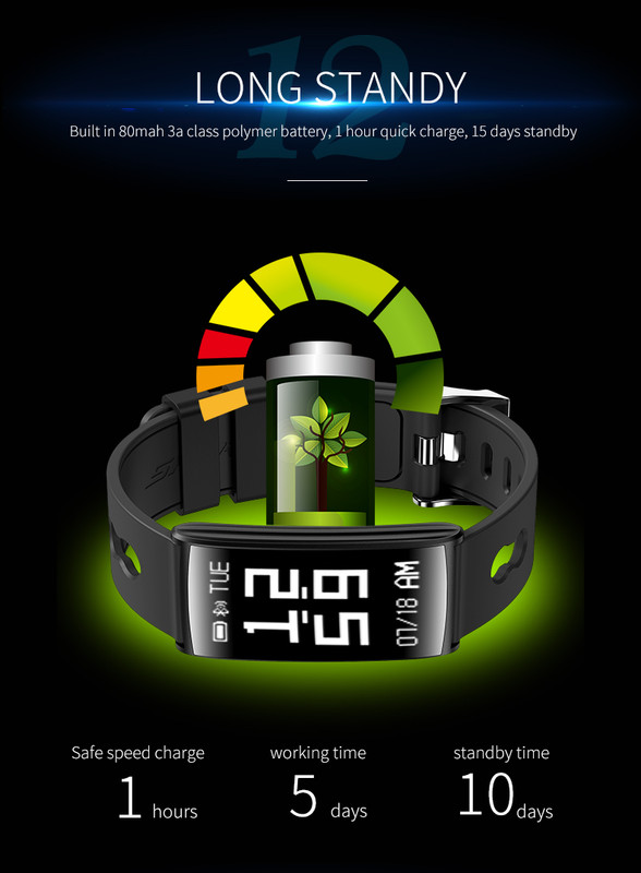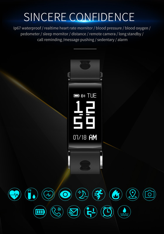 Functii:: Pedometru, Monitorizare Somn, Masurare puls, Anti-lost, Calorii arse, Notificari Facebook, Whatssup, etc, Notificari apeluri intrare, Vibratii, Distanta, Remote camera, Alarma, Notificari SMS, Sedentary remind, Sincornizare date, Tensiune, Nivel oboseala, Ritm cardiac, Rezistent la apa, Nivel oxigen sange
